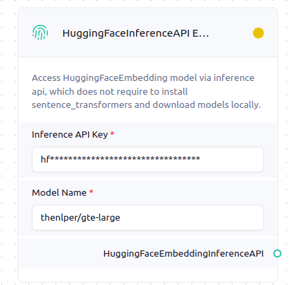 Inference API key: HuggingFace Access Token to run the embedding model on Inference API.