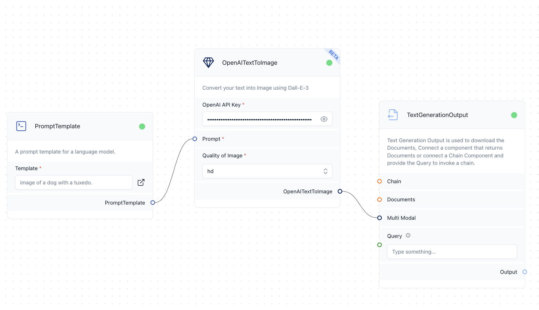 <figure><img src="https://3489179498-files.gitbook.io/~/files/v0/b/gitbook-x-prod.appspot.com/o/spaces%2FjlRjmrZThWiLNO9xTu9d%2Fuploads%2F9GPAYIPMfqCVVdspIHwk%2FScreenshot%202024-05-21%20at%205.28.00%E2%80%AFPM.png?alt=media&#x26;token=b0d2b152-b7fe-4dbd-a48e-83de2ee887d4" alt=""><figcaption><p>using the OpenAITextToImage to generate an image</p></figcaption></figure>