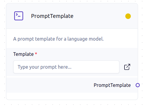 This prompt component is very straightforward; you can enter any instructions that you need to provide to the LLM. To receive a response, this component should be connected to either an LLM Chain or a RetrievalQAPrompt.