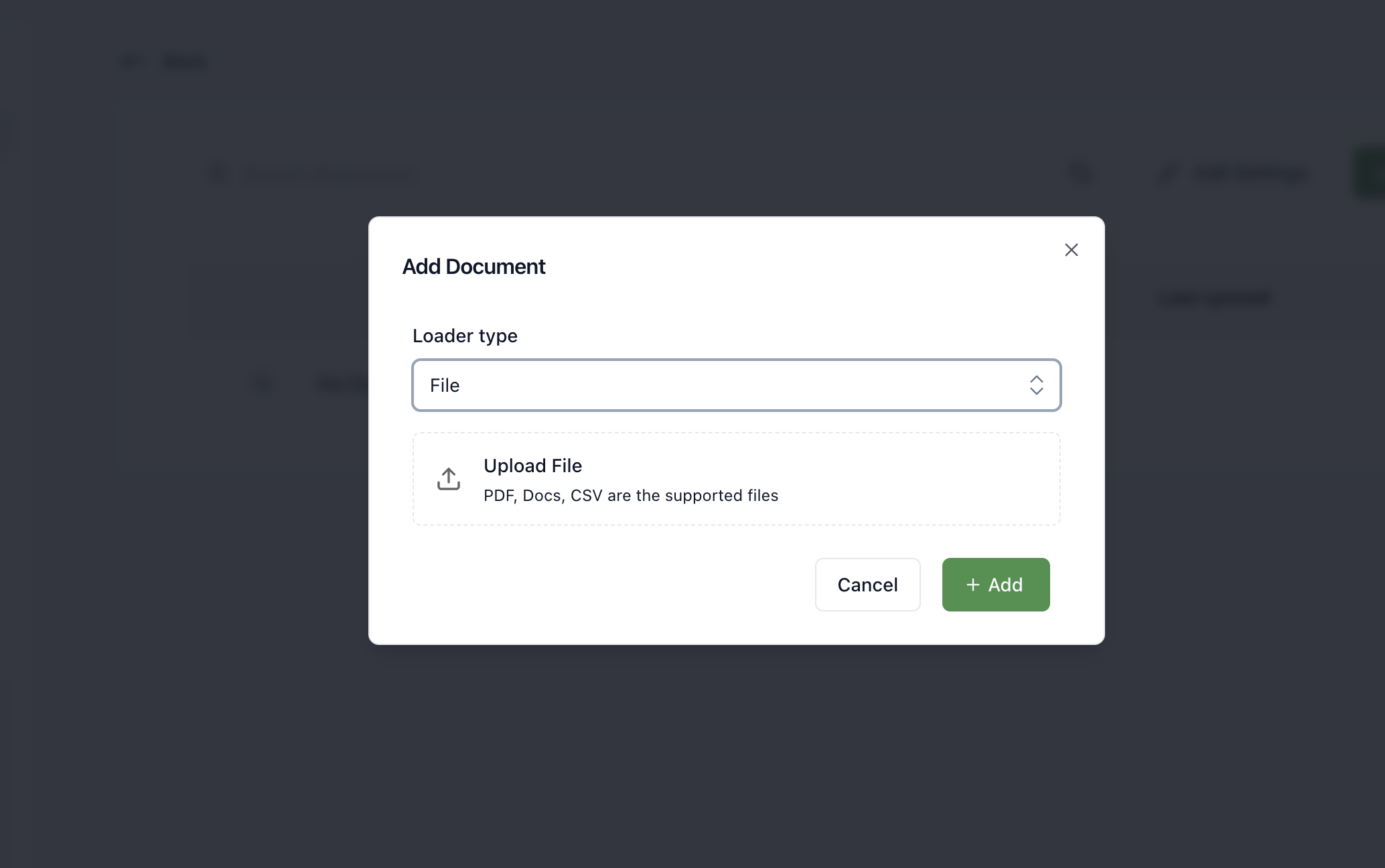 * You can upload files directly to populate your Knowledge Base. Supported file types include PDFs, Docs, and CSVs. Additionally, you can provide URLs to web pages, which will be scraped and included in your Knowledge Base.